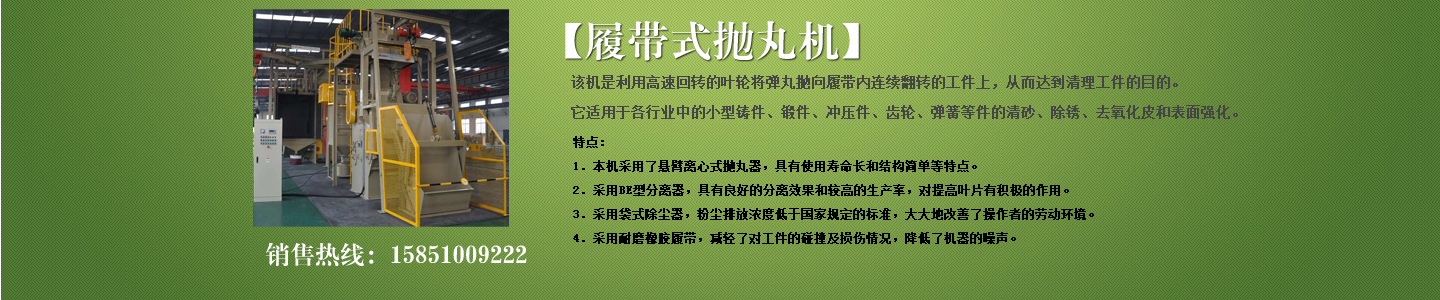 公司主要產(chǎn)品有各種型號拋丸機、履帶式拋丸機、吊鉤式拋丸機、懸鏈式拋丸機、通過式拋丸機;各種型號鑄鋼丸、鋼砂、合金鋼丸、強化鋼丸、不銹鋼丸;噴砂設(shè)備;環(huán)保除塵設(shè)備;鑄造設(shè)備;高效拋丸器;各種型號拋丸機配件等,并可根據(jù)用戶產(chǎn)品及產(chǎn)量需求設(shè)計符合要求的拋丸機;本公司產(chǎn)品從設(shè)計、開發(fā)、生產(chǎn)到服務(wù),全過程實行監(jiān)控,其產(chǎn)品在全方位立體的營銷服務(wù)網(wǎng)絡(luò)中,遍布全國各省市區(qū)。